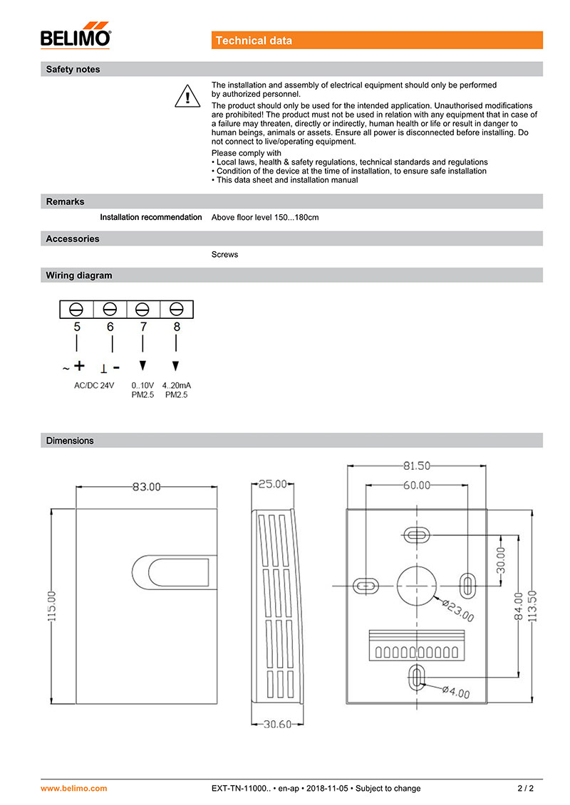 >> PM 2.5 sensor Technical data sheet