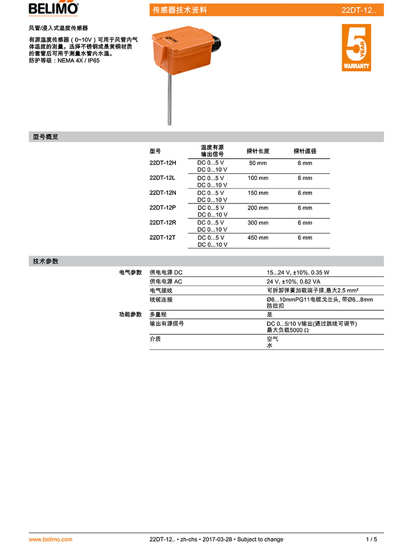 22DT-14..風(fēng)管/浸入式溫度傳感器