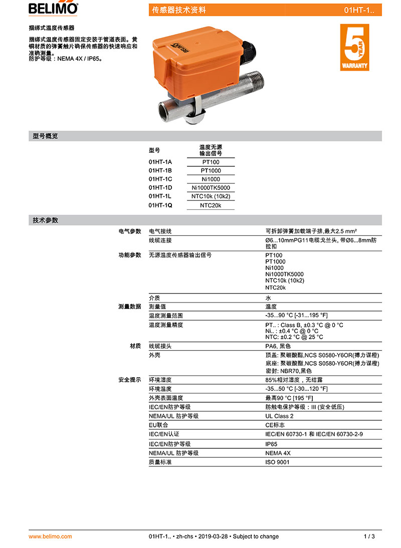 >> 01HT-1..捆綁式溫度傳感器