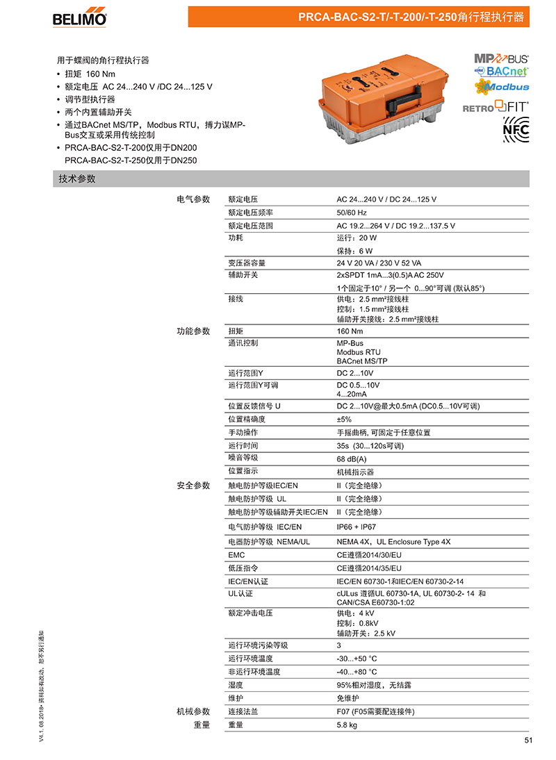PRCA-BAC-S2-T/-T-200/-T-250角行程執(zhí)行器