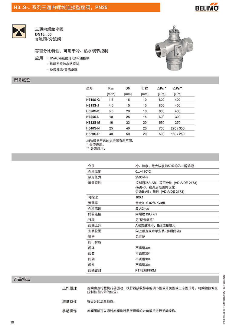 >> H3..S-.. 系列三通內(nèi)螺紋連接型座閥,PN25