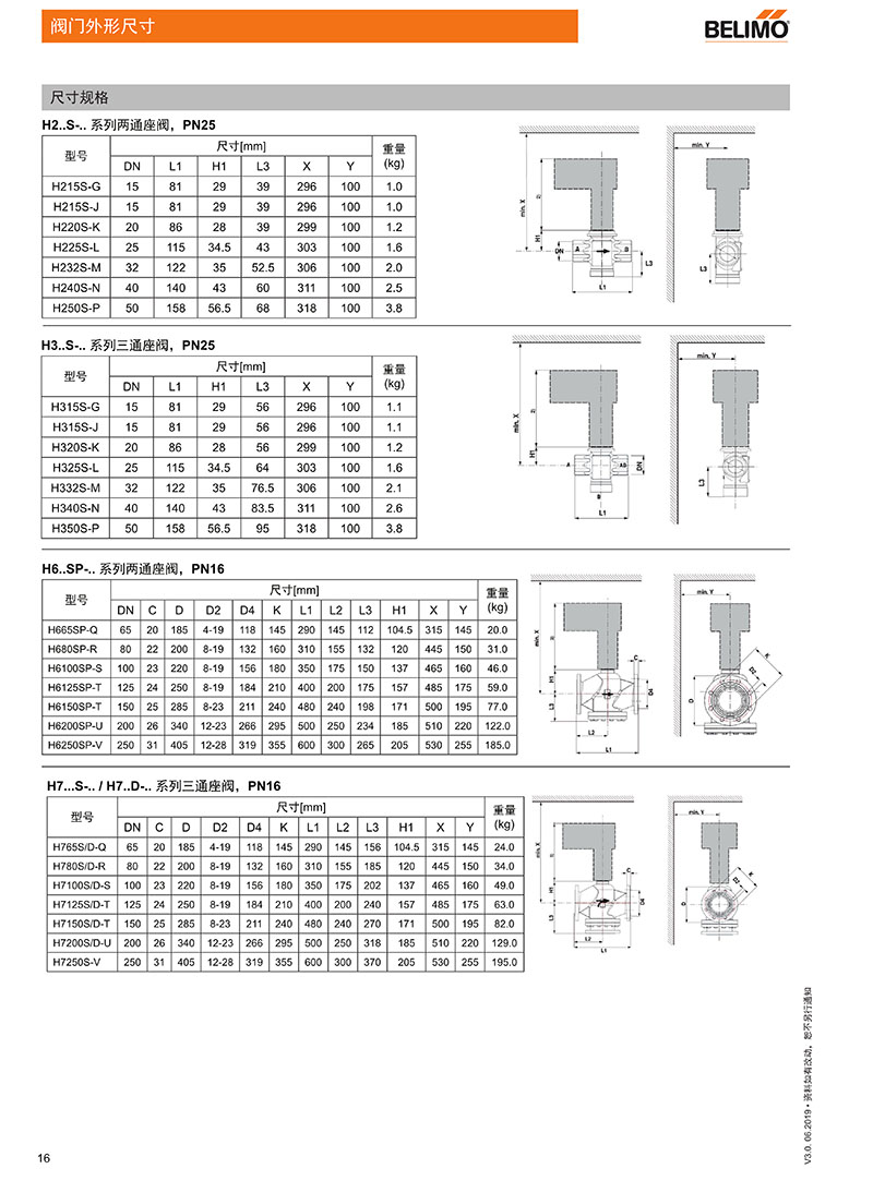 H6..SP-.. 系列二通法蘭連接型座閥,PN16